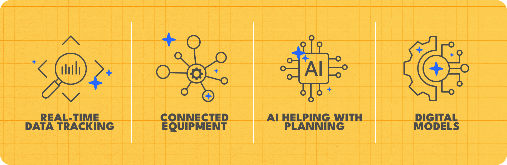 - Sensors tracking progress and conditions.